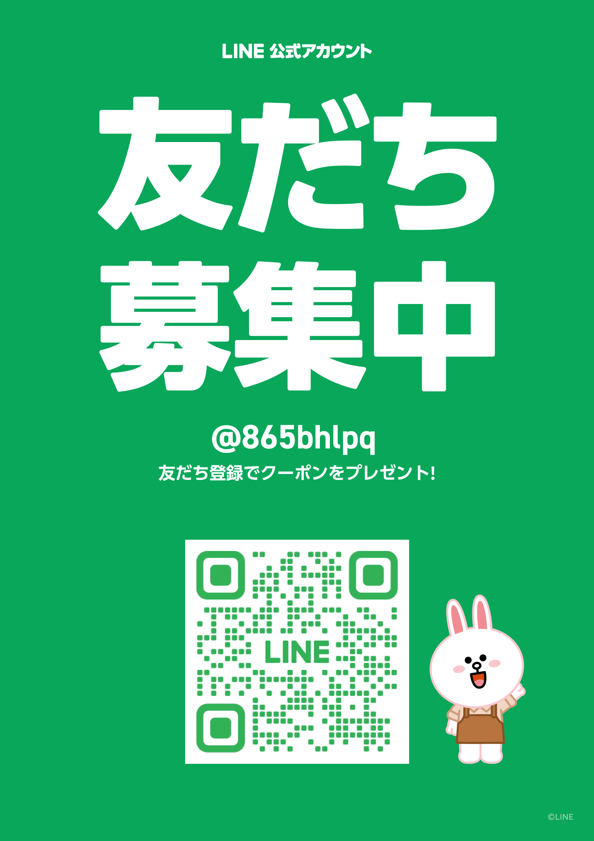 LINE公式アカウントにて、お得な情報やクーポンなどを定期的に配信いたします。