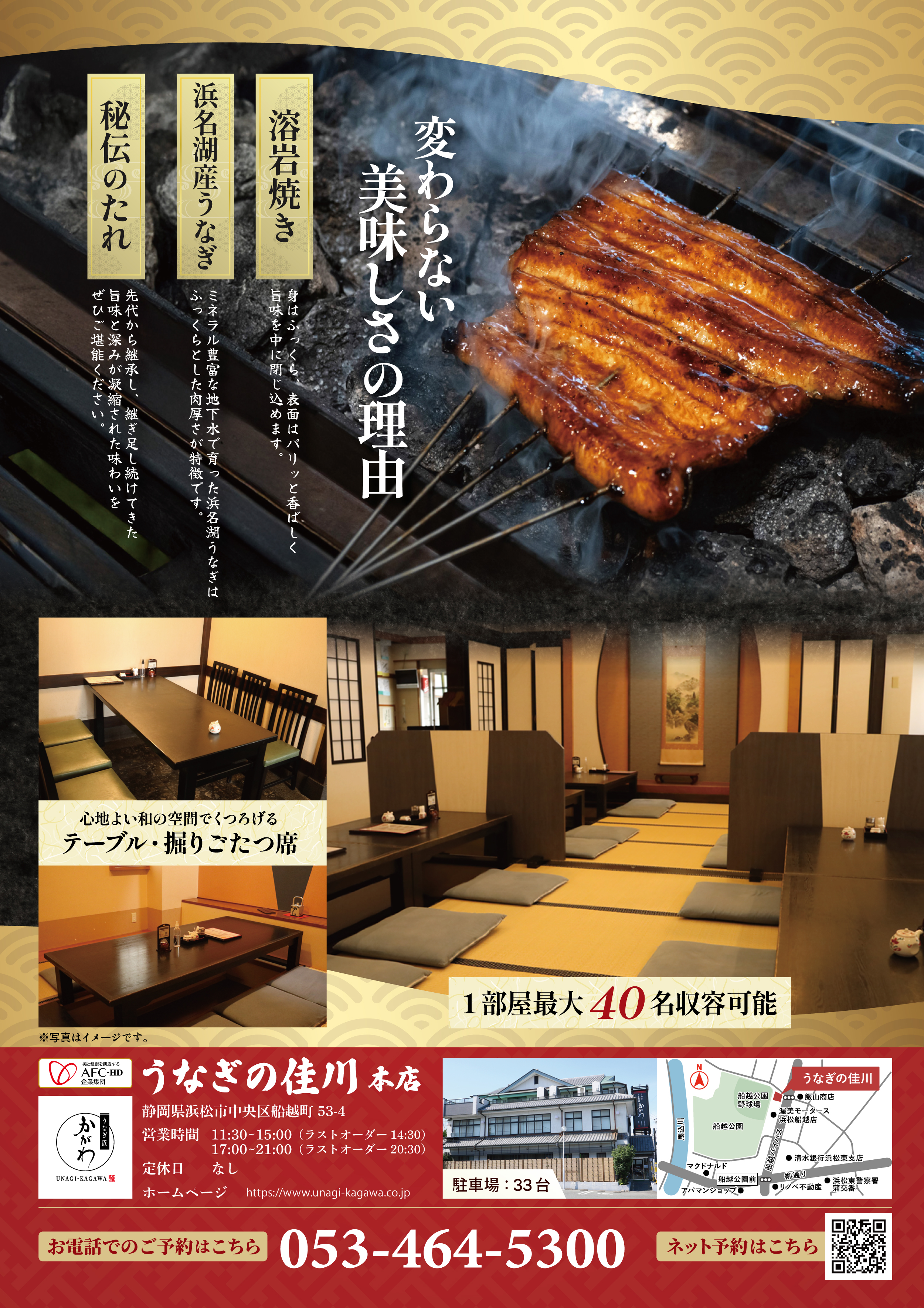 ぜひ佳川で浜名湖の美味しいうなぎをお召し上がりください!
